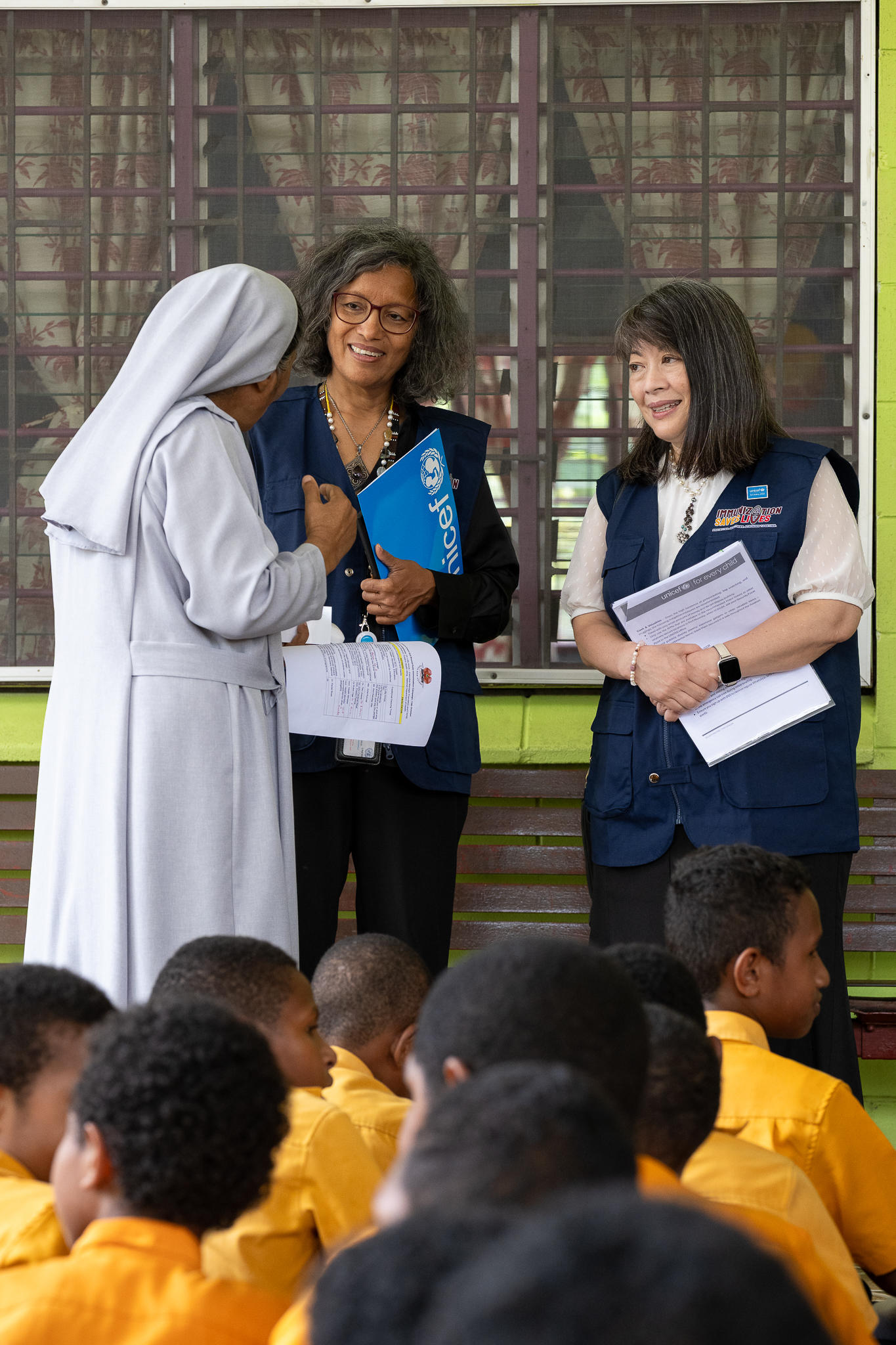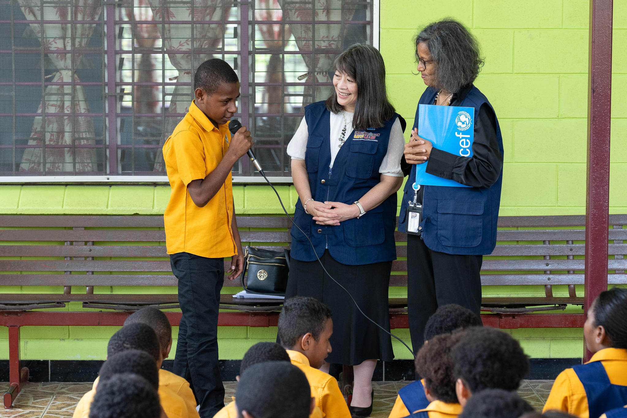 « Je tiens à féliciter le Gouvernement de Papouasie-Nouvelle-Guinée, l'Honorable Ministre de la Santé, le Département national de la Santé, le NEOC, nos agents de santé dévoués et tous nos partenaires pour avoir atteint une couverture de 83 % lors du premier cycle de la campagne. Malgré d'énormes défis géographiques, logistiques et sociaux, votre engagement collectif a protégé des milliers d'enfants contre la polio et a rapproché la PNG d'un pas de la fin de cette épidémie. » — June Kunugi, Directrice régionale, UNICEF Asie de l'Est et Pacifique