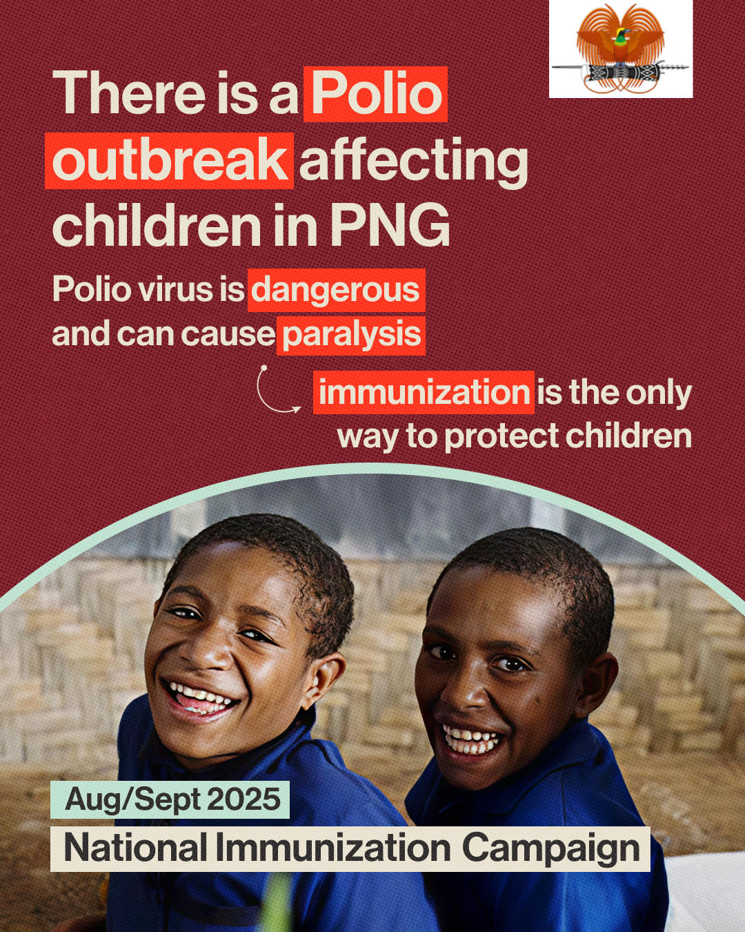 - Awareness — “Polio is spreading in PNG. It can paralyze children for life.”