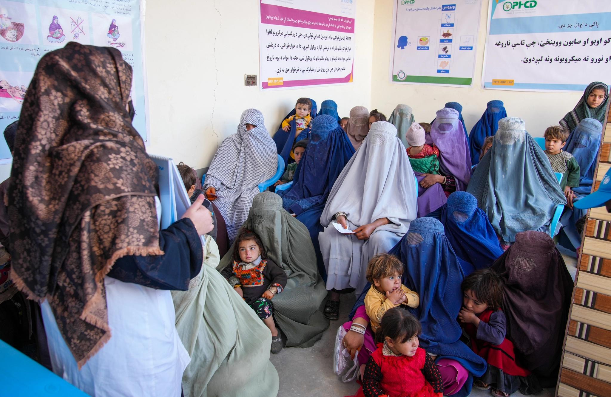 Photo: Mothers and children gather at a health camp in Kandahar to receive vaccines, hygiene supplies, and malnutrition screenings—all in one visit under the Integrated Service Delivery model. © UNICEF Afghanistan