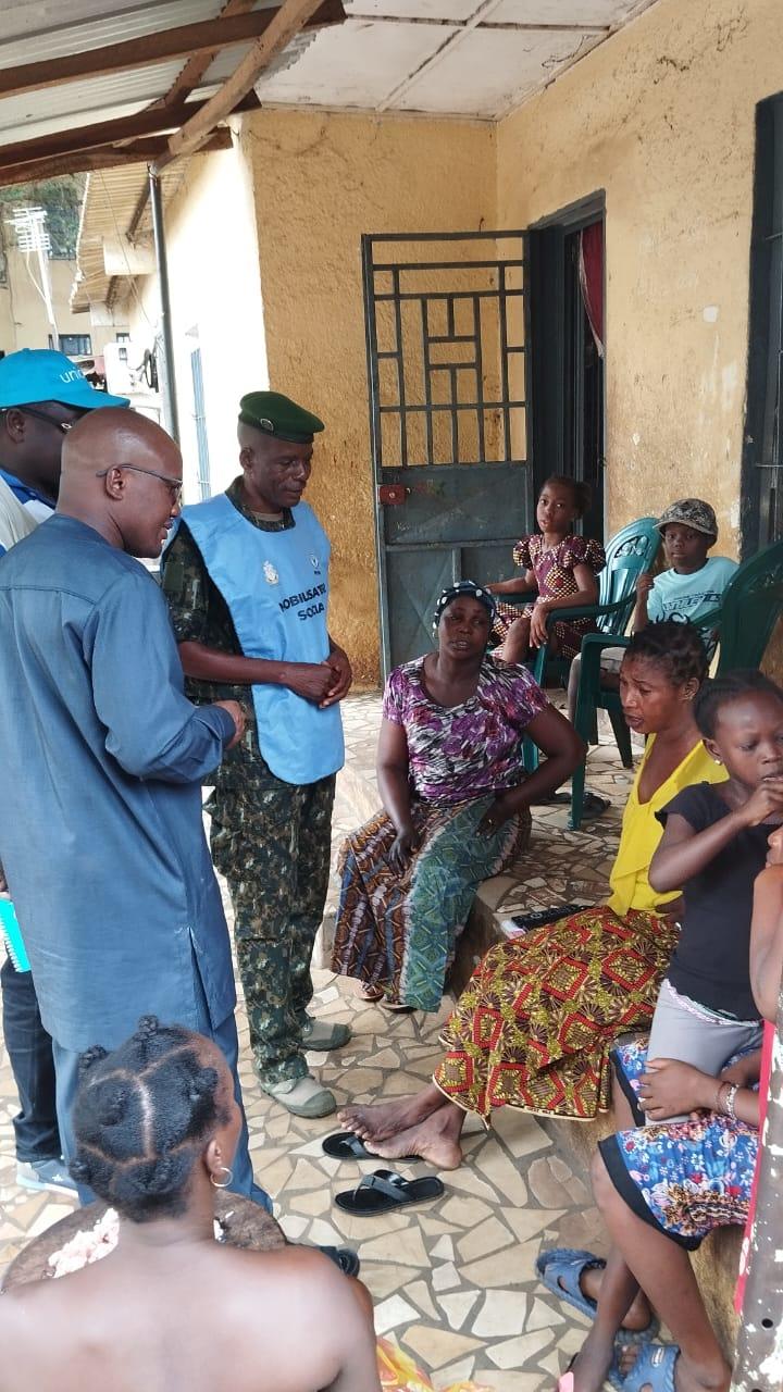Photo: Colonel Kpoghomou engaging a family in the community to raise awareness about the importance of polio vaccination.