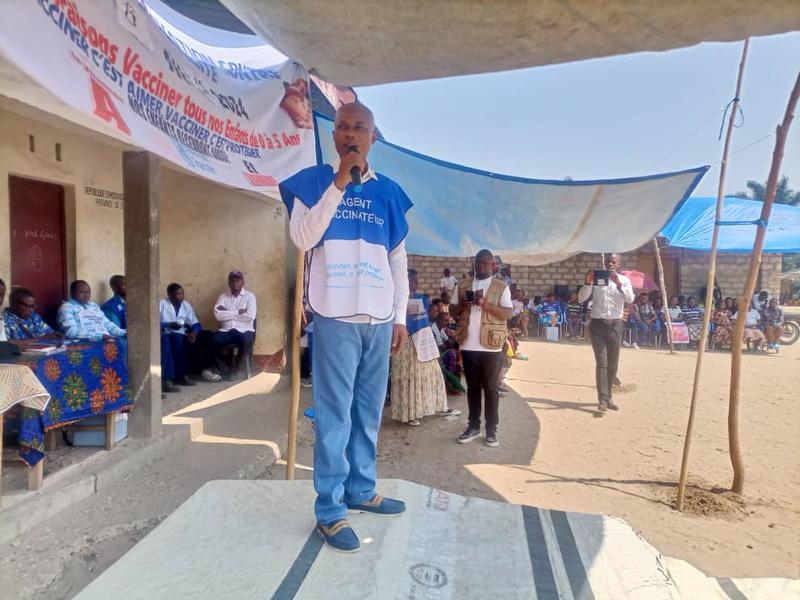Photo: Dr. Jean Baptiste MAUNGA addresses the community on the importance of children's health and vaccination during the International Day of the African Child. © UNICEF/2024