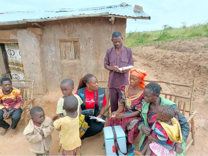 Photo: A heartfelt moment as Mrs. Josephine educates a mother on the importance of polio vaccination for her children. UNICEF/2024/DRC