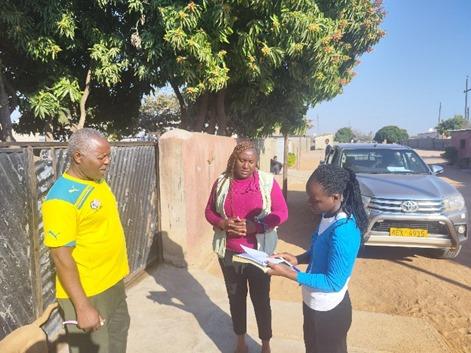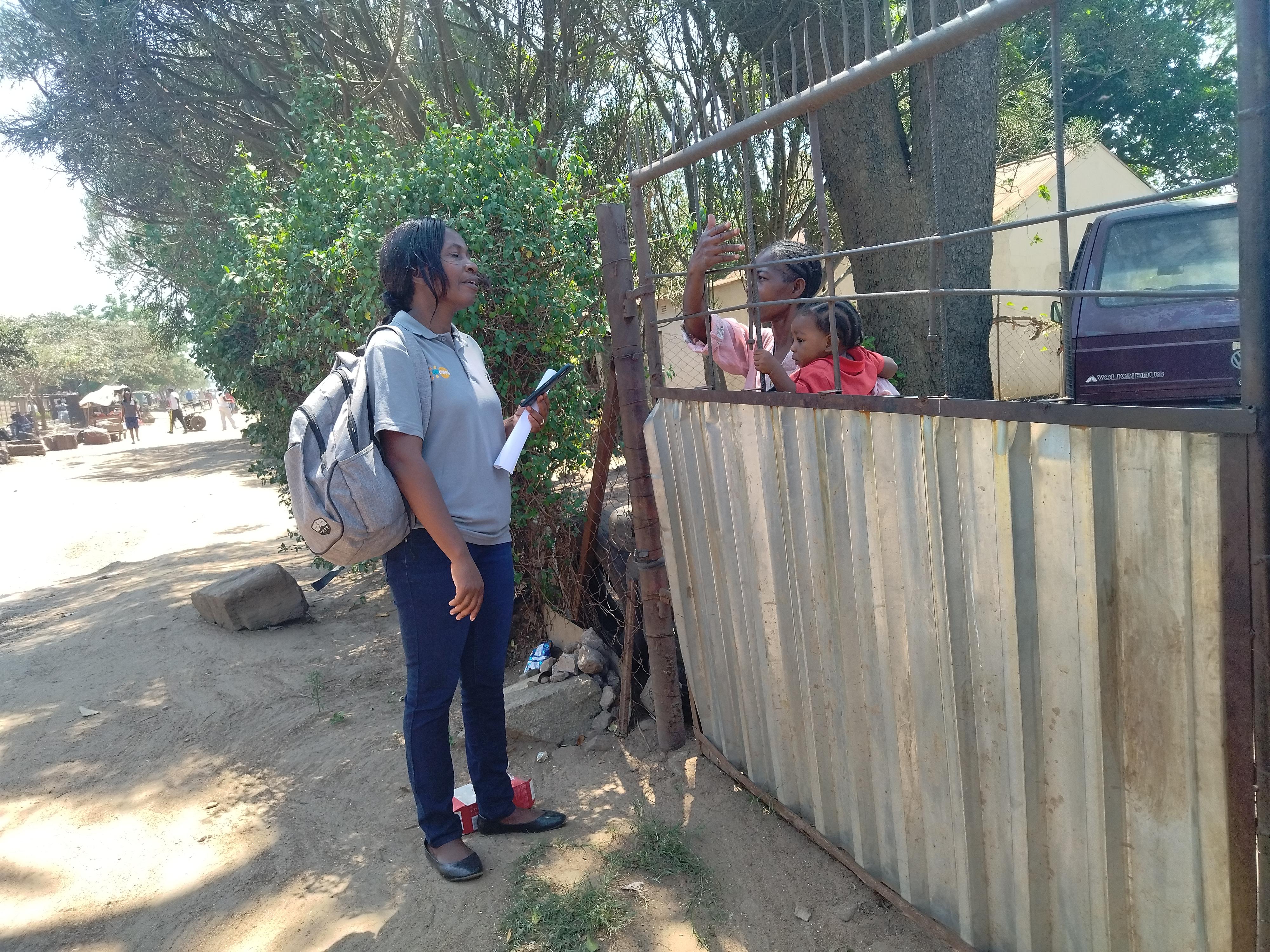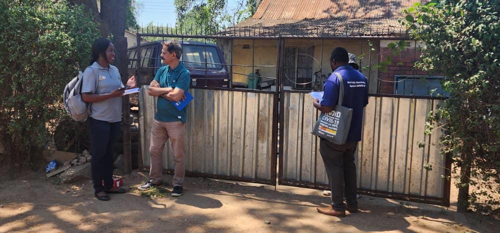 Photo: Social mobilizers gather outside a household during community interviews in Harare. © UNICEF Zimbabwe